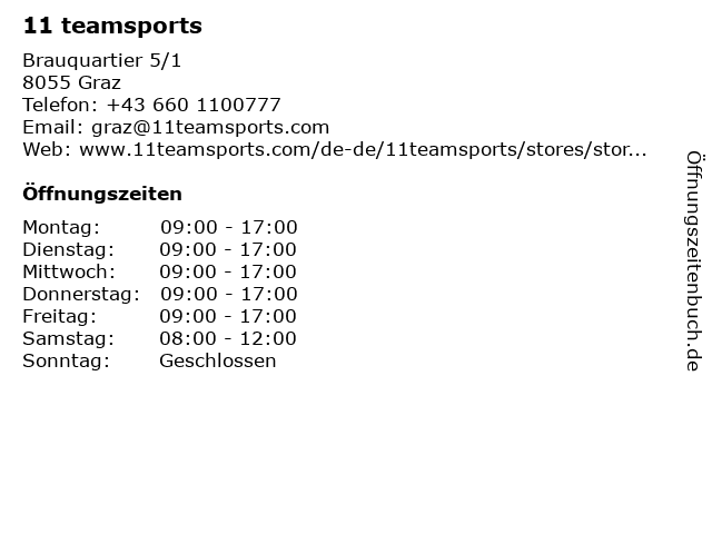 | Öffnungszeiten 11 teamsports in Graz anzeigen | |