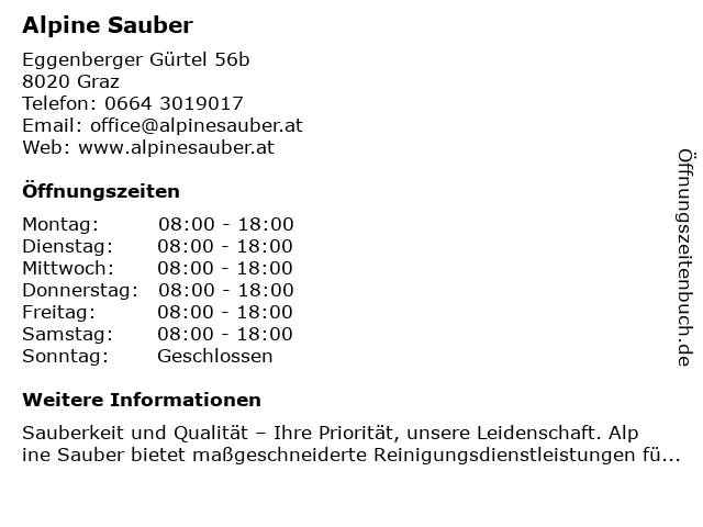 | Öffnungszeiten Alpine Sauber in Graz anzeigen | |