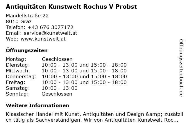 | Freitag | 10:00-13:00 und 15:00-18:00 |