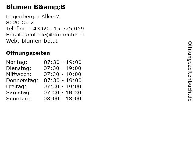 | Öffnungszeiten Blumen B&B in Graz anzeigen | |