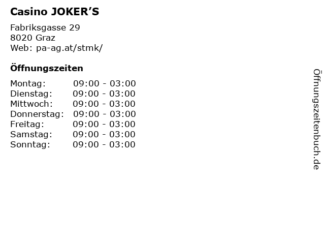 Öffnungszeiten Casino JOKER’S in Graz anzeigen