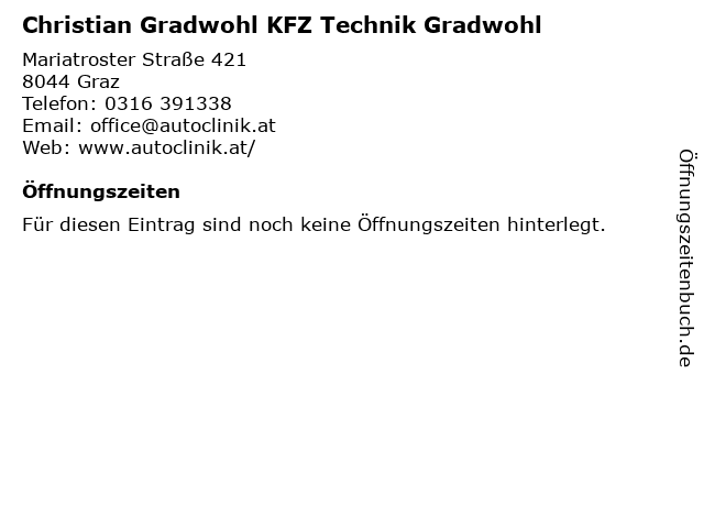 | Christian Gradwohl KFZ Technik Gradwohl anrufen | |