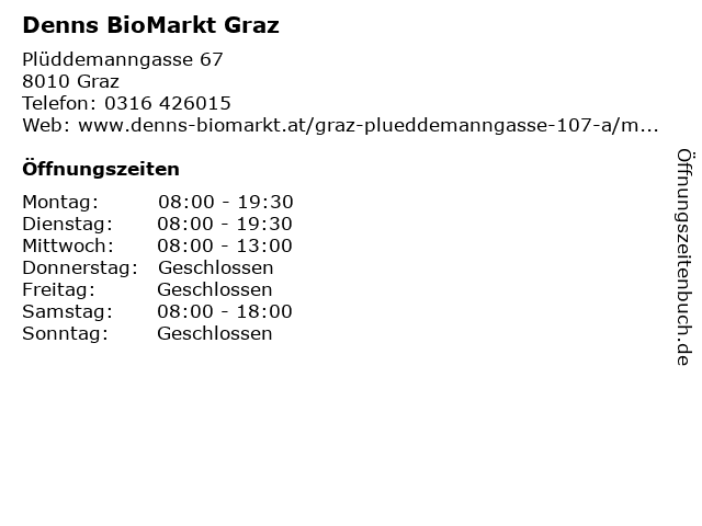 | Öffnungszeiten Denns BioMarkt Graz in Graz anzeigen | |