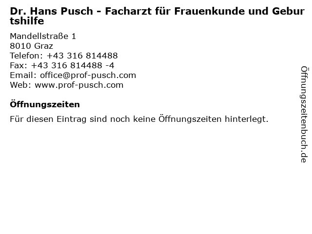 Branchen & Suchbegriffe zu Dr. Hans Pusch - Facharzt für Frauenkunde und Geburtshilfe:dr., facharzt, frauenarzt, frauenkunde, geburtshilfe, hans, ordination, pusch |