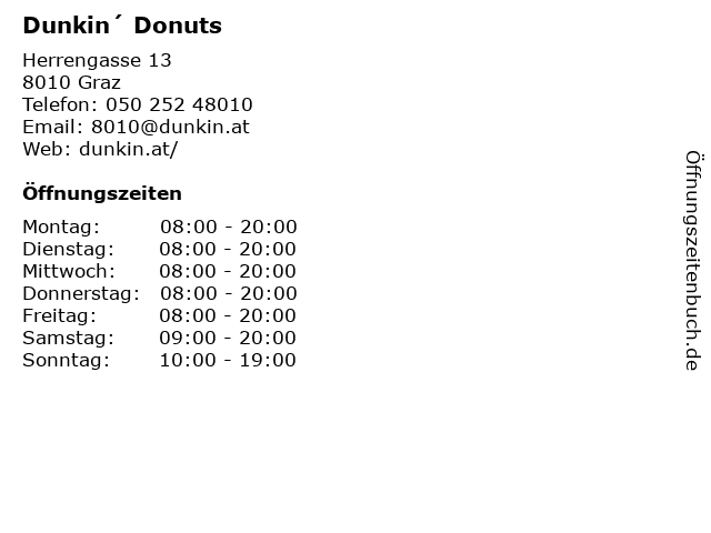 | Öffnungszeiten Dunkin´ Donuts in Graz anzeigen | |