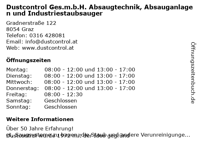 Branchen & Suchbegriffe zu Dustcontrol Ges.m.b.H. Absaugtechnik, Absauganlagen und Industriestaubsauger:absauganlagen, absaugtechnik, dustcontrol, ges.m.b.h., industriestaubsauger |