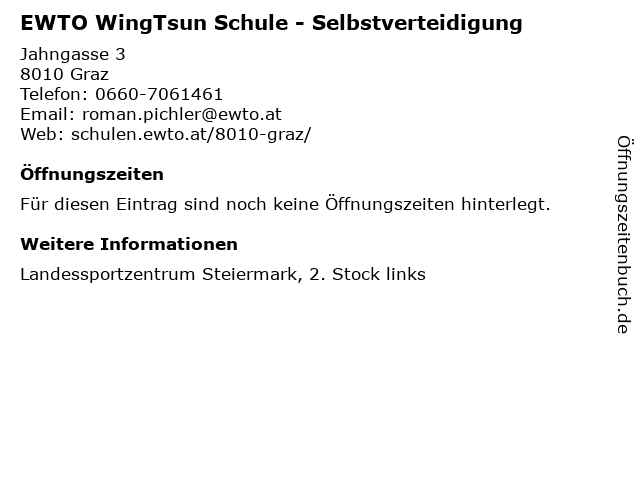 4 5 EWTO WingTsun Schule - Selbstverteidigung-Trainingszeiten (Entfernung: 49,67 km) Lindenallee 30, 8720 Knittelfeld 6 |