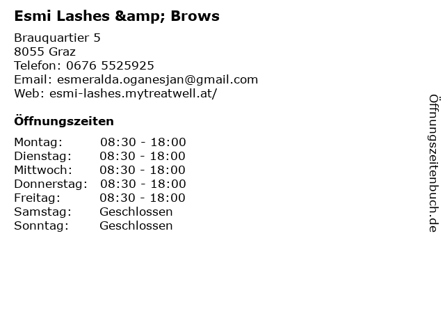 | Öffnungszeiten Esmi Lashes & Brows in Graz anzeigen | |