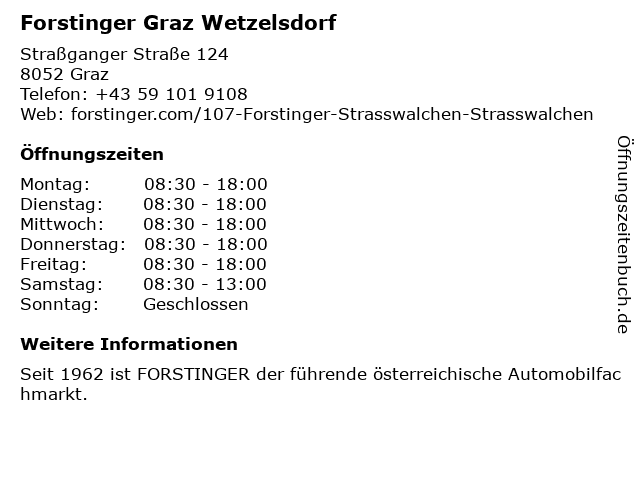 | Öffnungszeiten Forstinger Graz Wetzelsdorf in Graz anzeigen | |