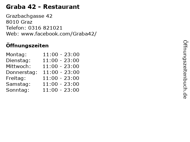 | Öffnungszeiten Graba 42 - Restaurant in Graz anzeigen | |