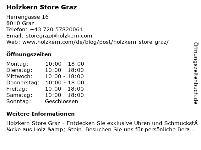 | Öffnungszeiten Holzkern Store Graz in Graz anzeigen | |
