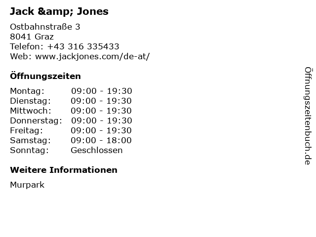 | Öffnungszeiten Jack & Jones in Graz anzeigen | |