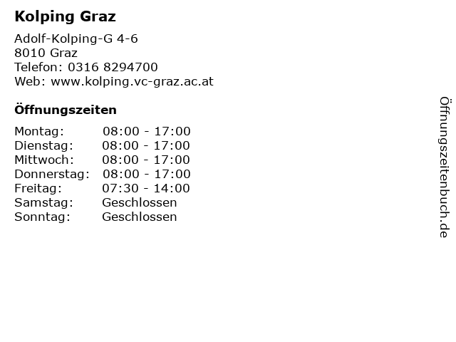 | Öffnungszeiten Kolping Graz in Graz anzeigen | |