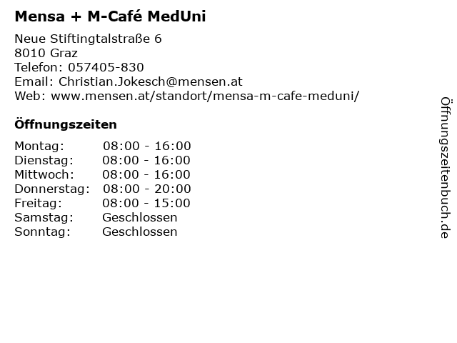 | Öffnungszeiten Mensa + M-Café MedUni in Graz anzeigen | |