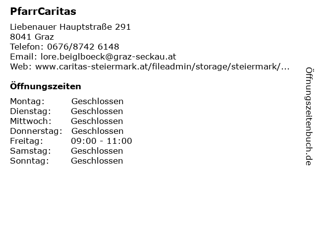 | Öffnungszeiten PfarrCaritas in Graz anzeigen | |