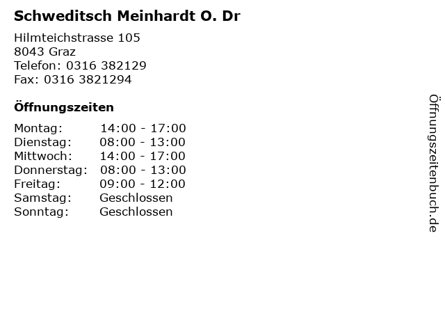 | Öffnungszeiten Schweditsch Meinhardt O. Dr in Graz anzeigen | |