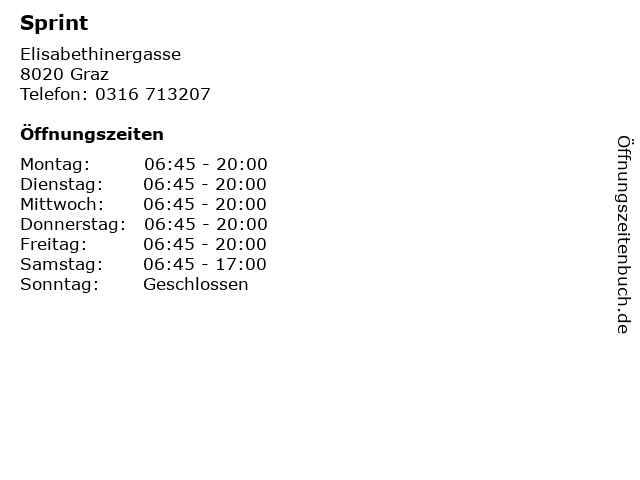 | Öffnungszeiten Sprint in Graz anzeigen | |