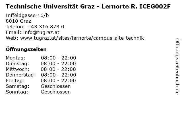 Branchen & Suchbegriffe zu Technische Universität Graz - Lernorte R. ICEG002F:ausbildung, fernstudium, graz, hfh, hochschule, iceg002f, lehranstalt, lernen, lernorte, r., sekretariat, studienberatung, studienzentrum, technische, universität, universiät, unterricht |