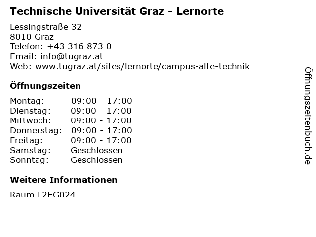 Branchen & Suchbegriffe zu Technische Universität Graz - Lernorte:ausbildung, fernstudium, graz, hfh, hochschule, lehranstalt, lernen, lernorte, sekretariat, studienberatung, studienzentrum, technische, universität, universiät, unterricht |