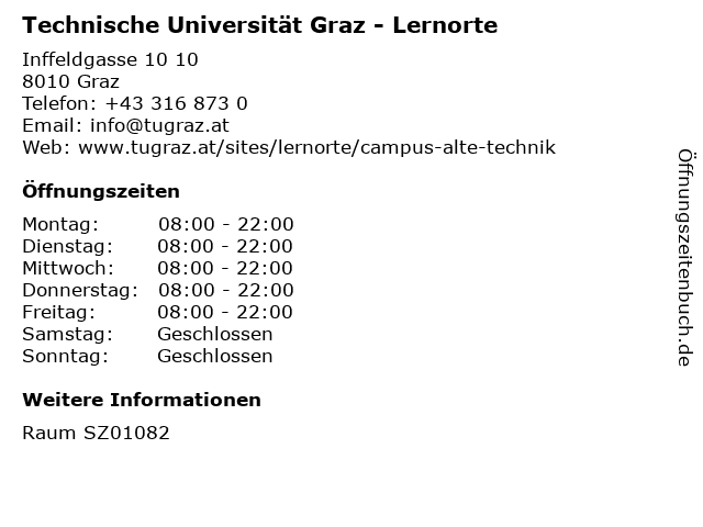 Branchen & Suchbegriffe zu Technische Universität Graz - Lernorte:ausbildung, fernstudium, graz, hfh, hochschule, lehranstalt, lernen, lernorte, sekretariat, studienberatung, studienzentrum, technische, universität, universiät, unterricht |