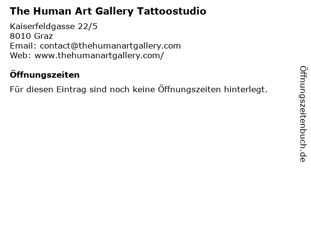 | Öffnungszeiten The Human Art Gallery Tattoostudio in Graz anzeigen | |