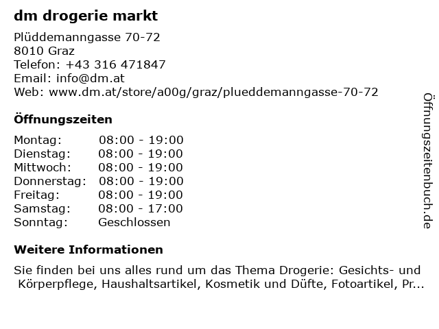 Öffnungszeiten dm drogerie markt in Graz anzeigen | |
