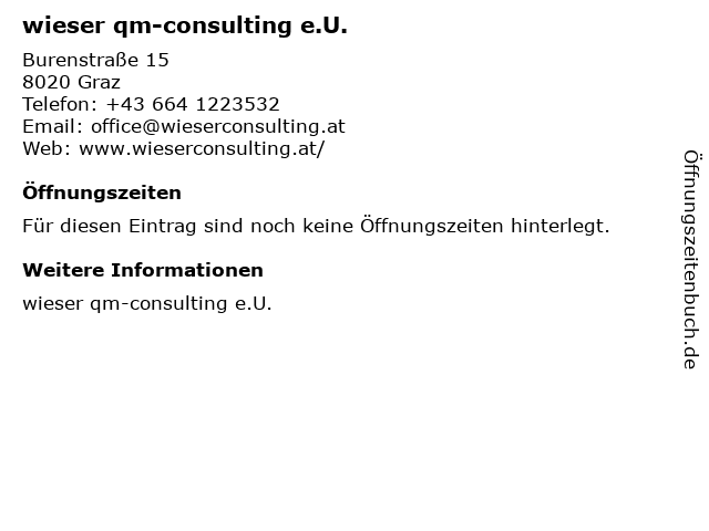 | Öffnungszeiten wieser qm-consulting e.U. in Graz anzeigen | |