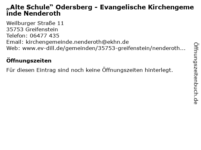 | „Alte Schule“ Odersberg - Evangelische Kirchengemeinde Nenderoth anrufen | |