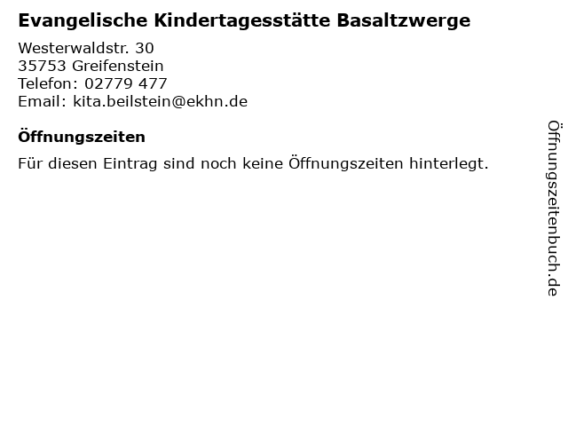 | Evangelische Kindertagesstätte Basaltzwerge anrufen | |