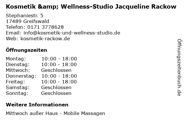 1 Jacqueline Rackow Kosmetik und Massage-Studio (Entfernung: 1,67 km) Stephaniestraße 5, 17489 Greifswald 2 LVM-Versicherungsagentur Jacqueline Dunker-Knoche (Entfernung: 1,75 km) Anklamer Str. 81, 17489 Greifswald 3 LVM Versicherung Jacqueline Dunker-Knoche - Versicherungsagentur (Entfernung: 1,75 km) Anklamer Straße 81, 17489 Greifswald 6 |