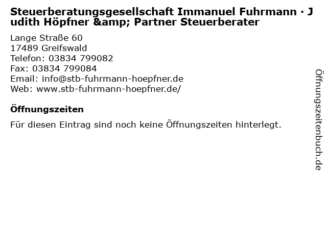 | Steuerberatungsgesellschaft Immanuel Fuhrmann · Judith Höpfner & Partner Steuerberater anrufen | |
