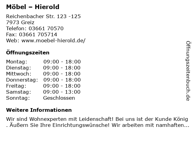 | Öffnungszeiten Möbel – Hierold in Greiz anzeigen | |