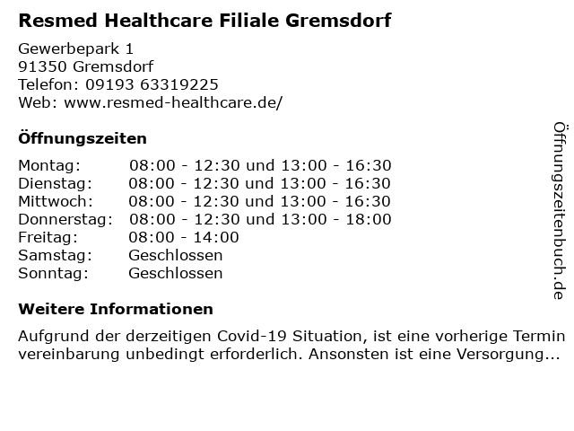 Branchen & Suchbegriffe zu Resmed Healthcare Filiale Gremsdorf:gremsdorf, healthcare, resmed, schlafapnoe |