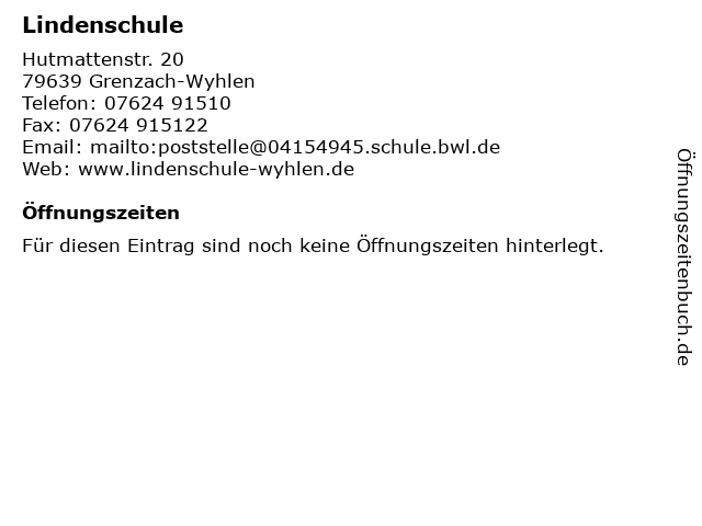 | Öffnungszeiten Lindenschule in Grenzach-Wyhlen anzeigen | |