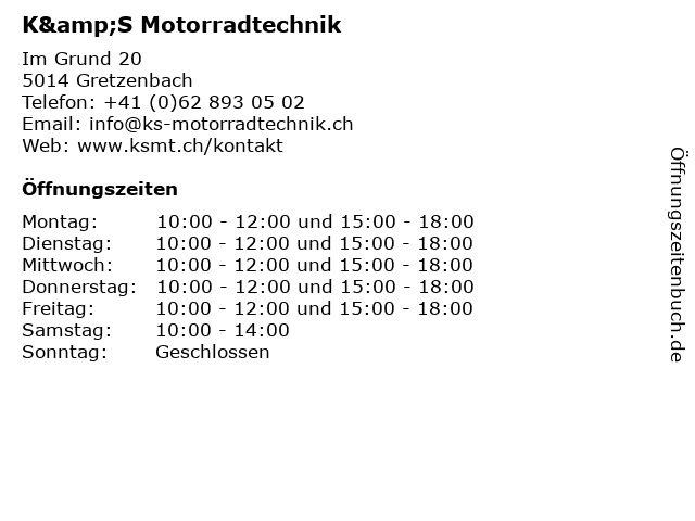 | Öffnungszeiten K&S Motorradtechnik in Gretzenbach anzeigen | |