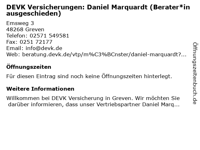| DEVK Versicherungen: Daniel Marquardt (Berater*in ausgeschieden) anrufen | |