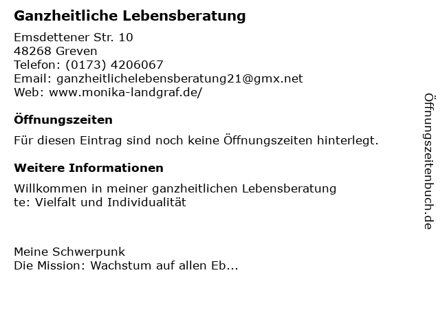 | Adresse Ganzheitliche Lebensberatung in Greven anzeigen |
