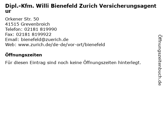 | Dipl.-Kfm. Willi Bienefeld Zurich Versicherungsagentur anrufen | |