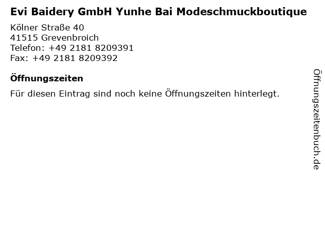 | Evi Baidery GmbH Yunhe Bai Modeschmuckboutique anrufen | |