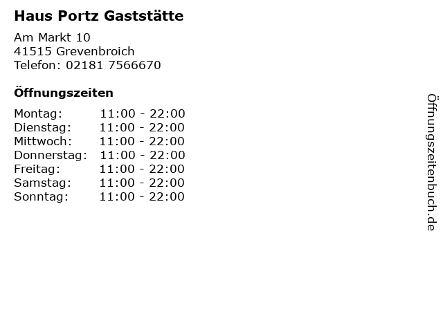 | Öffnungszeiten Haus Portz Gaststätte in Grevenbroich anzeigen | |