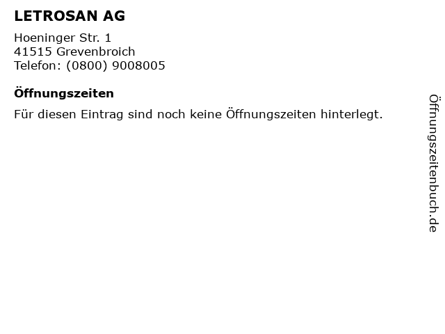 Öffnungszeiten LETROSAN AG in Grevenbroich anzeigen | |