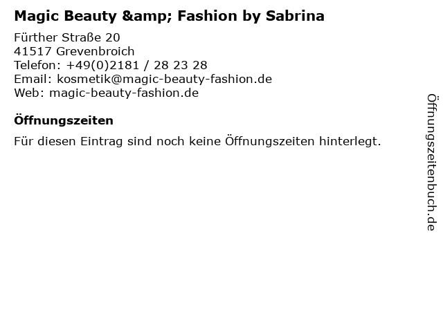 | Magic Beauty & Fashion by Sabrina anrufen | |