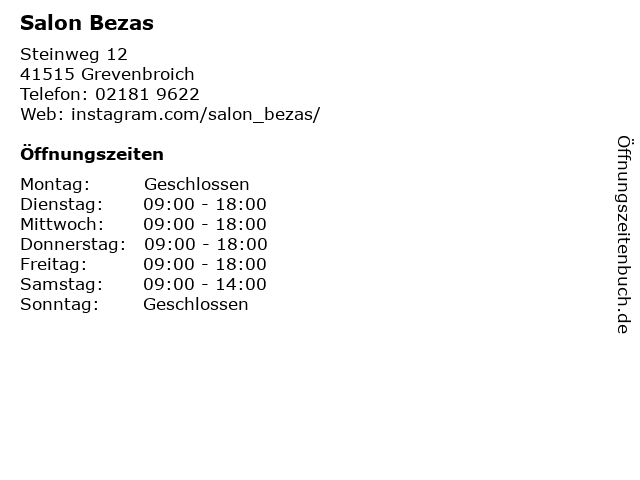 Öffnungszeiten Salon Bezas in Grevenbroich anzeigen