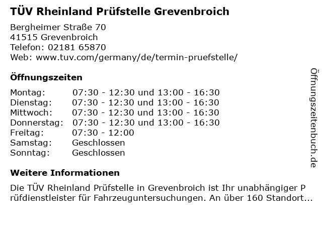 Branchen & Suchbegriffe zu TÜV Rheinland Prüfstelle Grevenbroich:prüfstelle, rheinland, tüv |