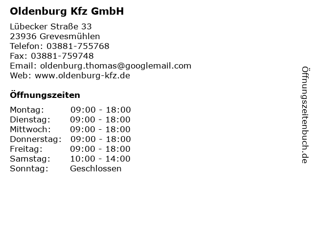 | Öffnungszeiten Oldenburg Kfz GmbH in Grevesmühlen anzeigen | |