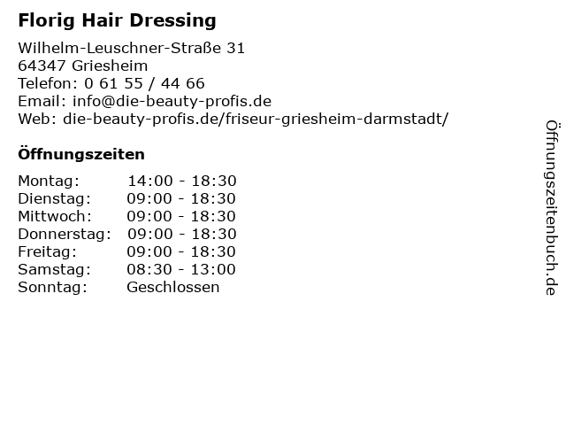 | Adresse Florig Hair Dressing in Griesheim anzeigen |