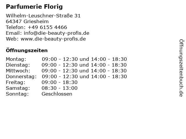 | Öffnungszeiten Parfumerie Florig in Griesheim anzeigen | |