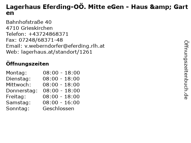 Branchen & Suchbegriffe zu Lagerhaus Eferding-OÖ. Mitte eGen - Haus & Garten:bau&garten, baustoffe, brennstoffe, eferding, egen, garten, grieskirchen, haus, heimwerken, lagerhaus, mitte, oö., raiffeisen |