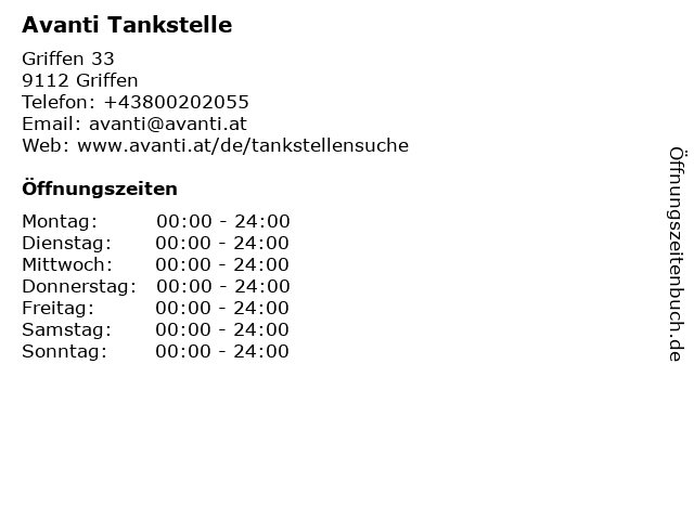 | Öffnungszeiten Avanti Tankstelle in Griffen anzeigen | |