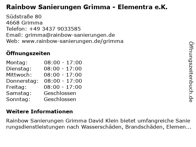 Branchen & Suchbegriffe zu Rainbow Sanierungen Grimma - Elementra e.K.:brandschaden, brandschadensanierung, e.k., elementra, feuchte wand, rainbow, sanierungen, schimmelsanierung, trocknung, wasserschaden, wasserschadensanierung |